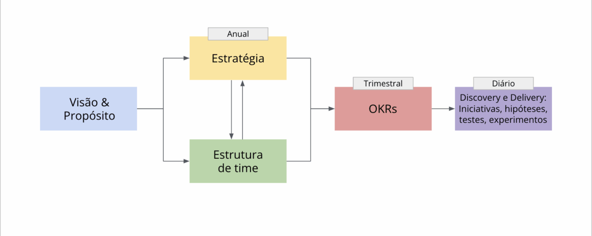 O conceito é simples, mas costuma ser frequentemente ignorado: antes de falarmos de estrutura, autonomia, modelo de time, OKRs, Discovery e Delivery, precisamos de um contexto estratégico claro: